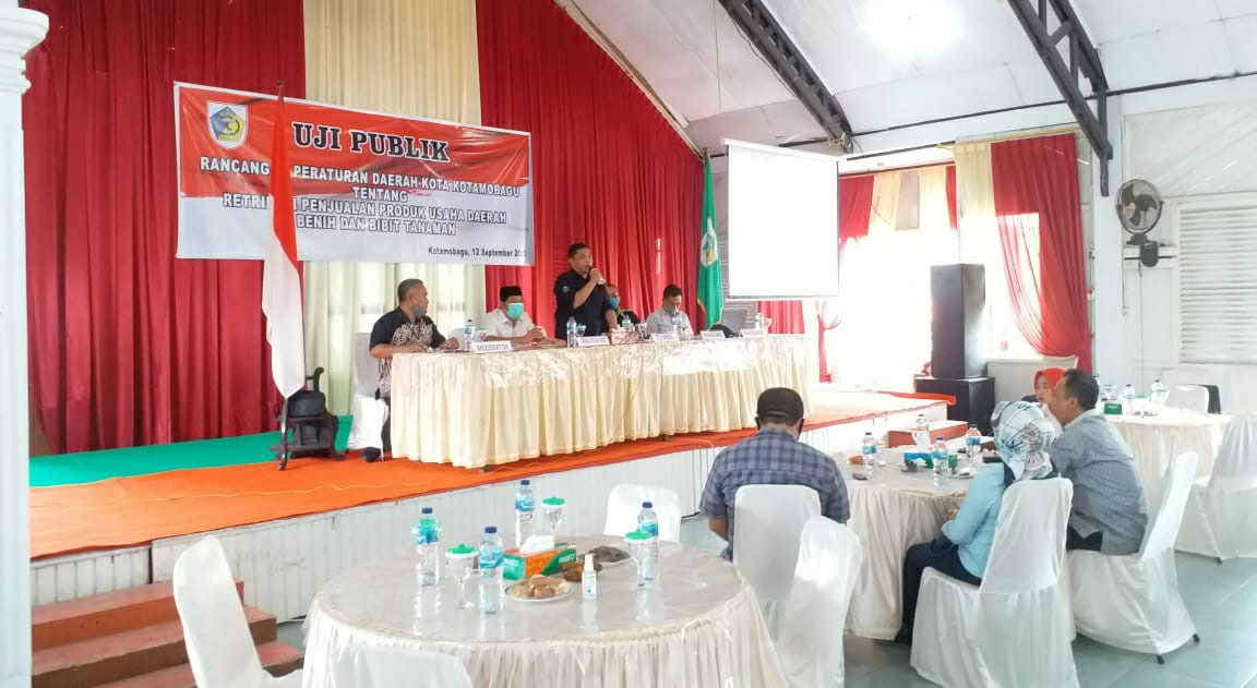 Mediatotabuan.co, Kotamobagu – Dewan Perwakilan Rakyat Kotamobagu (DPRD) Kota Kotamobagu, melalui Badan Pembentukan Peraturan Daerah (Bapemperda), mengelar uji publik Rancangan Peraturan Daerah (Ranperda) Tentang Retribusi Penjualan Produk Usaha Daerah Benih Bibit dan Tanaman.
