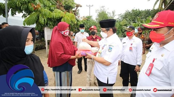 mediatotabuan.co, Bolsel – Pjs Bupati Bolsel, Praseno Hadi, memimpin penyaluran bantuan Sembako Covid-19, di tiga desa di Kecamatan Pinolosian Tengah, Rabu (07/10).