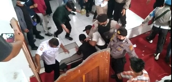 Pada saat terjadi kericuhan, pihak kepolisian dan Satuan Polisi Pamong Praja (Satpol-PP) Kotamobagu, mengamankan sejumlah aktivis dengan cara diseret keluar ruangan dan langsung di bawa ke Mapolres Kotamobagu.