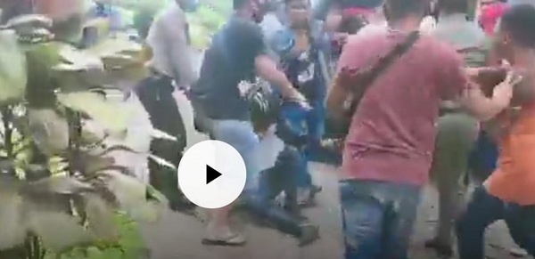 Salah satu massa demonstran, saat diseret dan diamankan kepolisian. (Foto: Tangkapan Layar)