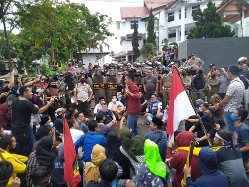 Kedatangan mereka ini, untuk menyampaikan aspirasinya terkait penolakan Omnibus Law Undang-Undang (UU) Cipta Kerja, yang baru saja disahkan DPR-RI, Kamis (8/10) sekitar pukul 14.00 Wita.
