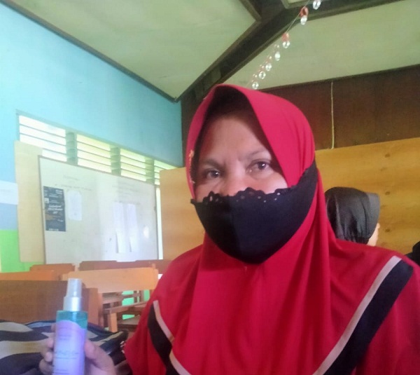 mediatotabuan.co, Bolsel — Pengajar di Madrasah Tsanawiyah (MTs) Negeri 2 Kabupaten Bolaang Mongondow Selatan (Bolsel) Yati A Ruchban, telah membiasakan memakai masker dan membawa hand sanitizer setiap beraktivitas.