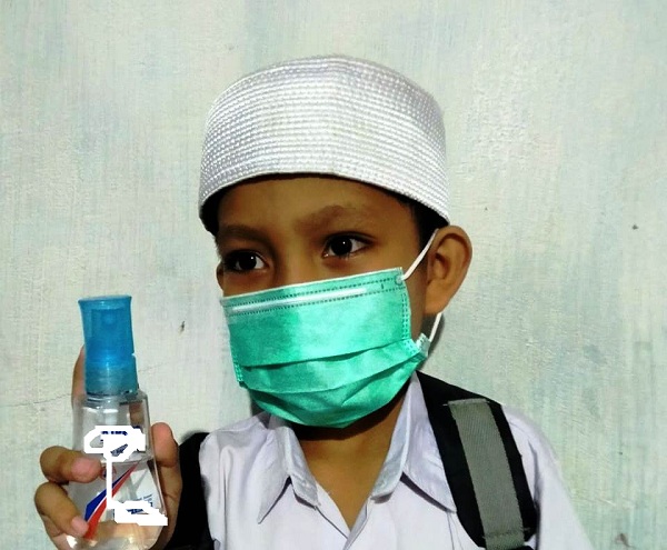 “Ibu selalu manaruh hand zanitiser di dalam tas, dan berpesan sering gunakan bila tidak mencuci tangan dengan air pakai sabun,” kata siswa kelas II Alkhairat ini.