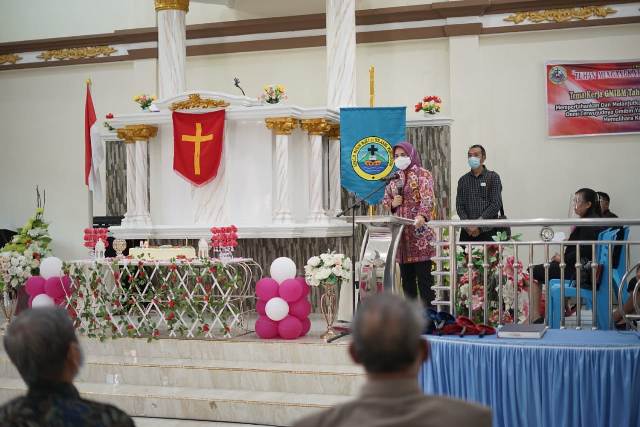 mediatotabuan.co, Kotamobagu – Wali Kota Kotamobagu, Ir Hj Tatong Bara, dihadapan Jemaat Gereja GMIBM Pniel Gogagoman, mengingatkan pentingnya Protokol Kesehatan (Protkes) Covid-19.