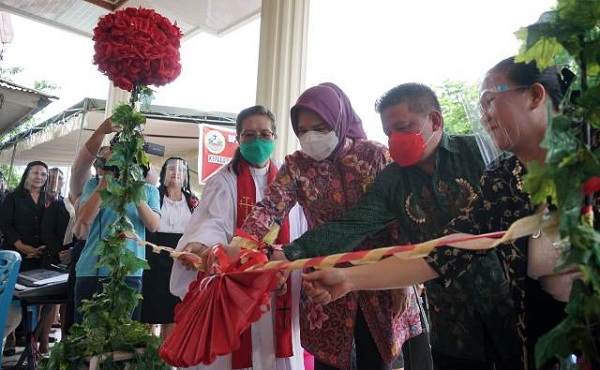 mediatotabuan.co, Kotamobagu – Wali Kota Kotamobagu, Ir Hj Tatong Bara dan Wakilnya Nayodo Koerniawan SH (TB-NK), meresmikan Gereja Jemaat Pniel Gogagoman, Minggu (25/10).