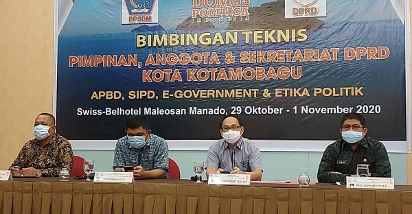 Kegiatan yang digelar oleh Domus Politika Indonesia bekerjasama dengan Badan Pengembangan Sumber Daya Manusia (SDM) Provinsi Sulut, serta Sekertariat DPRD Kotamobagu ini, digelar selama empat hari mulai dari Kamis (29/10) hingga Senin (01/11).