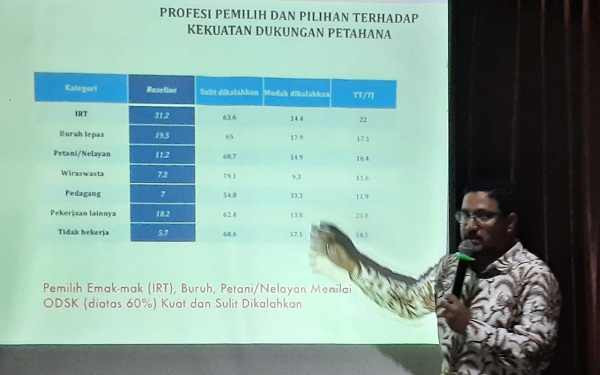 Peneliti LSI Ikrama Malsoman, dalam konperensi pers yang digelar di Hotel Gran Sentral Manado, Sabtu (31/10) mengungkapkan, 65 persen pemilih yang disurvei menyatakan Olly-Steven sulit dikalahkan. Menariknya, pemilih tersebut juga termasuk datang dari kalangan partai politik.