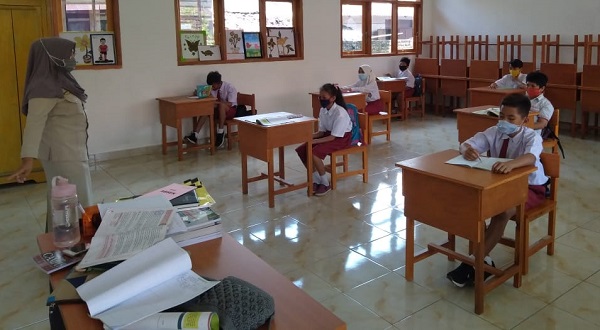 “Yaitu dengan 3M (Datang disekolah memakai masker, sebelum masuk kelas mencuci tangan dengan sabun, menjaga jarak saat duduk dalam kelas),” katanya lagi.