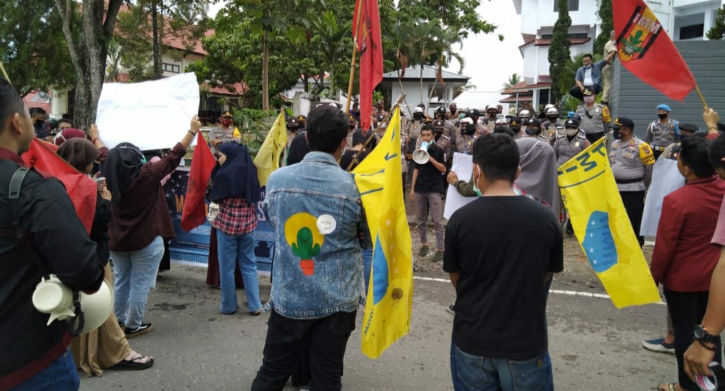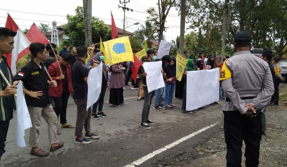 Massa dari Aliansi Gemeppar, saat menggelar aksi demo di depan kantor DPRD Kotamobagu. (Foto: Yudi Paputungan)