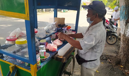 Namun, ia bersyukur, meski hanya mengunakan gerobak dan tidak berkeliling lagi, Es Campur dan Cendol banyak peminat.