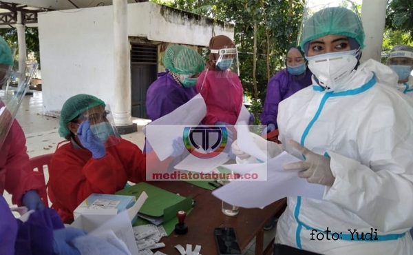 mediatotabuan.co, Kotamobagu – Sedikitnya 900 orang anggota KPPS se Kotamobagu Barat, mengikuti rapid test, dari tim tenaga kesehatan Puskesmas Gogagoman, Selasa (10/11).