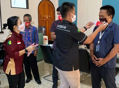 Dalam kegiatan ini, Dinkes Kotamobagu, melakukan Gerakan Kampanye Nasional 3M dengan membagikan masker dan buah kepada masyarakat Kota kotamobagu, termasuk yang berada di perkantoran.