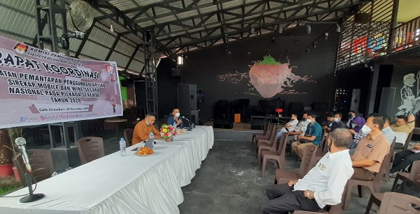 mediatotabuan.co, Boltim – Komisi Pemilihan Umum (KPU) Kabupaten Bolaang Mongondow Timur (Boltim), menggelar Rapat Koordinasi (Rakor) dalam rangka persiapan pelaksanaan kegiatan pemantapan penggunaan aplikasi Sistem Informasi Rekapitulasi (Sirekap) dan Wibe, pada Pilkada Serentak 2020 dengan menerapkan Protokol Kesehatan (Prokes) Covid-19.