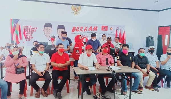 Dengan perolehan suara yang diraih, BerKAH bersama tim pemenangan langsung menggelar konferensi pers di sekretariat PDI Perjuangan, Desa Sondana, Kamis (10/12).