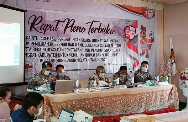 mediatotabuan.co, Bolsel – Badan Pengawasan Pemilu (Bawaslu) Kabupaten Bolaang Mongondow Selatan (Bolsel), mengawasi rapat pleno terbuka rekapitulasi hasil penghitungan suara pemilihan gubernur dan wakil gubernur Sulawesi Utara (Sulut), serta bupati dan wakil bupati Bolsel, oleh Komisi Pemilihan Umum (KPU).