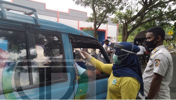 Personil gabungan ini, melakukan pemeriksaan, mulai dari pengecekan suhu tubuh, pemakaian masker dan sebagainya.