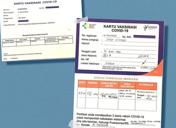“Kartu akan diberikan kepada semua orang yang divaksinasi, sekaligus pengingat agar tepat waktu menjalani vaksin kedua,” tulisnya lagi.