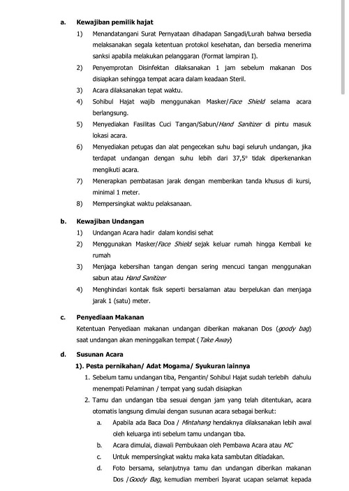 Pedoman teknis pelaksanaan kegiatan kemasyarakatan baik suka maupun duka di masa pandemi Covid-19 ini, untuk menekan kasus baru terkonfirmasi positif Covid-19.