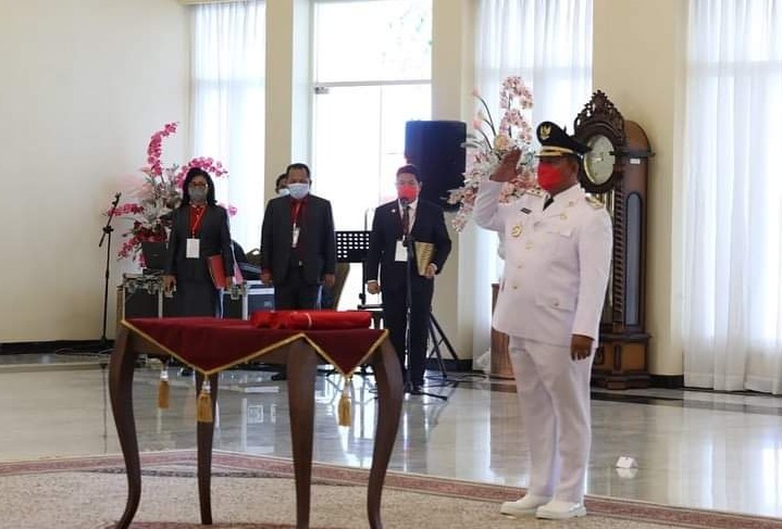 Pengambilan sumpah janji jabatan dipandu langsung oleh Gubernur Sulawesi Utara (Sulut), Olly Dondokambey.