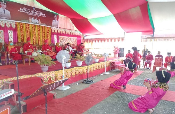 Kedatangan pemimpin baru di daerah religius tersebut, diiringi Tarian Kabela binaan sanggar tari kreasi Kabupaten Bolsel. Pun, kedua pemimpin ini menggunakan pakaian adat khas Mongondow.