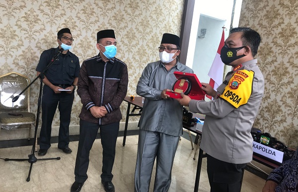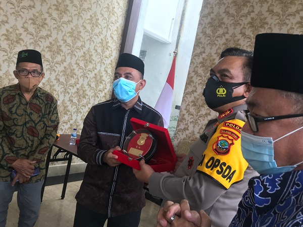 Irjen Panca Putera, menyerahkan cindera mata kepada NU Sulut.