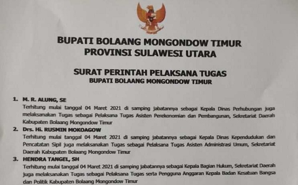 Ini dibuktikan dengan adanya penunjukan tujuh orang ASN di jajaran Pemkab Boltim, lima diantaranya Pelaksana Tugas (Plt) jabatan eselon II, dan dua orang sebagai Plt Kepala Sekolah (Kepsek).