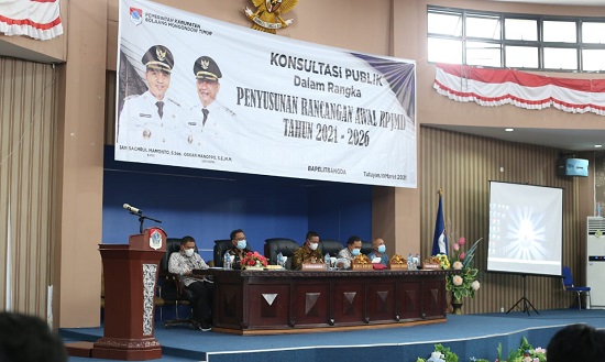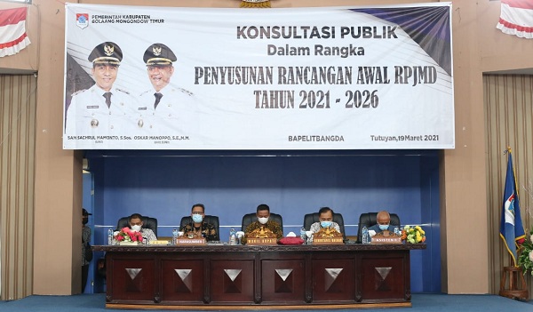 mediatotabuan.co, Boltim – Pemerintah Kabupaten (Pemkab) Bolaang Mongondow Timur (Boltim), menggelar Konsultasi Publik dalam rangka penyusunan awal Rencana Pembangunan Jangka Menengah Daerah (RPJMD) tahun 2021-2026.