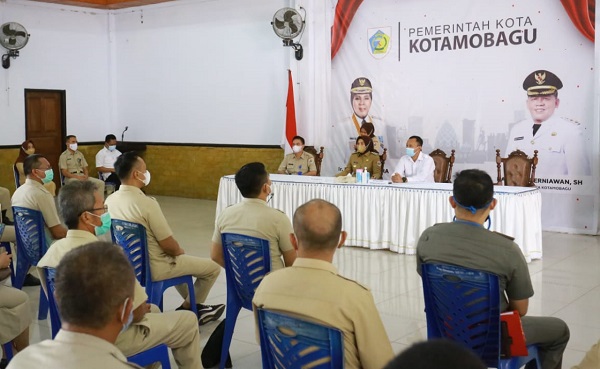 Didampingi Wali Kota, Kepala BPKP Sulut, Setya Nugraha, saat bertatap muka dengan pejabat di lingkungan Pemkot Kotamobagu. (Foto: Istimewa)
