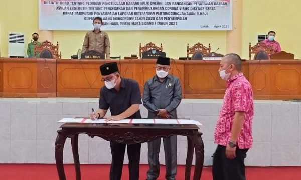 Sejumlah Ranperda yang diparipurnakan yakni inisiatif dewan tentang pedoman pengelolaan Barang Milik Daerah (BMD), serta Ranperda usulan eksekutif terkait pencegahan dan pengendalian Covid-19.