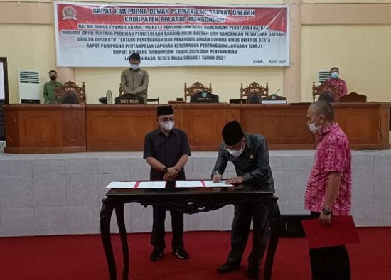 mediatotabuan.co, Bolmong – Dewan Perwakilan Rakyat Daerah (DPRD) Kabupaten Bolaang Mongondow (Bolmong) menggelar rapat paripurna dalam rangka Pembicaraan Tingkat I sejumlah Rancangan Peraturan Daerah (Ranperda), Kamis (22/04).