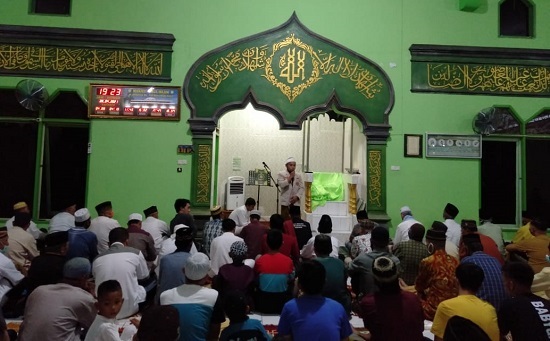 Safari Ramadhan Pemuda Muhammadiyah Kotamobagu. Nampak Ketua Amaludin Bahansubu, sedang memberikan siraman rohani. (Foto: Istimewa)