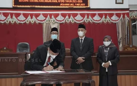 Agenda yang dilaksanakan di kantor wakil rakyat Bolsel ini, hadiri Bupati Iskandar Kamaru, dirangkaikan dengan Penandatanganan Nota Kesepakatan Bersama Tentang Rancangan Awal (Ranwal) Rencana Pembangunan Jangka Menengah Daerah (RPJMD) Kabupaten Bolsel Tahun 2021-2026.