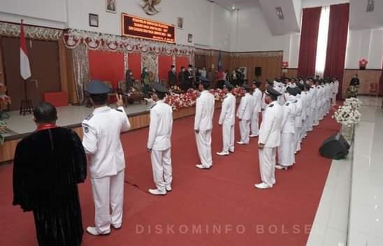 mediatotabuan.co, Bolsel – Bupati Bolaang Mongondow Selatan (Bolsel), Iskandar Kamaru, didampingi Wakil Bupati, Deddy Abdul Hamid, melantik 28 sangadi atau kepala Desa, hasil Pemilihan Sangadi (Pilsang), serentak tahun 2021, Kamis (10/06), di Gedung DPRD Bolsel.