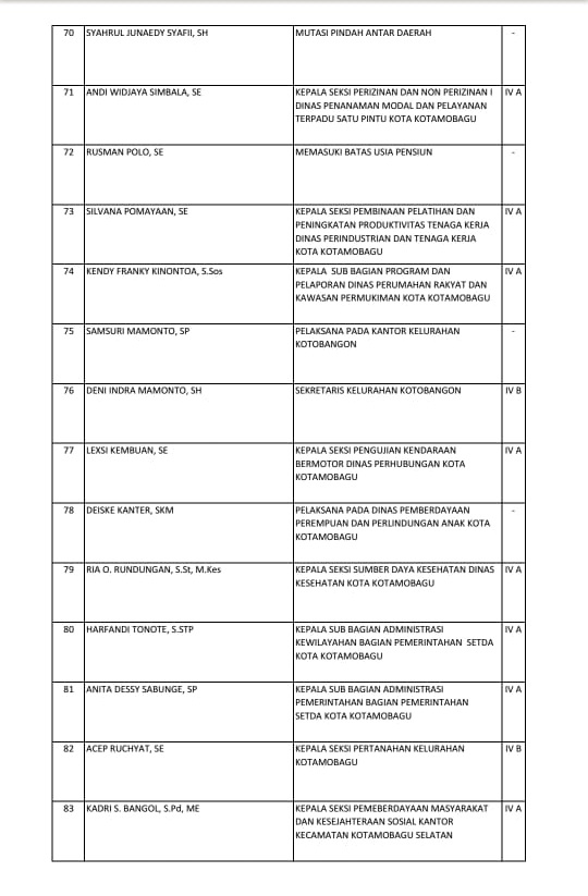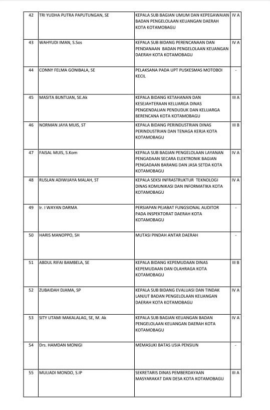 Hari Ini, Tatong Bara Rombak Jabatan 125 Pejabat Kotamobagu. Ini Data LengkapnyaAdministrator16/06/2021Berita, BERITA UTAMA, DAERAH, KOTAMOBAGU, Pemerintahan Wali Kota Kotamobagu, Ir Hj Tatong Bara, saat melantik dan mengambil sumpah kepada 125 pejabat di lingkungan Pemkot Kotamobagu. (Foto: Tangkapan Layar) Previous page Pages: 1 2 Jangan LewatkanPT Tirta Bukaka Bolmong Seriusi Keluhan Warga MolinowKoperasi Karyawan PT Tirta Bukaka Bolmong Pilih Ketua Secara DemokratisPemkot Turut Hadir Pembukaan Muscab PKB se BMRAsisten I Sahaya Mokoginta Tegur Perangkat Kelurahan Diduga Tak Disiplin dalam Barisan
