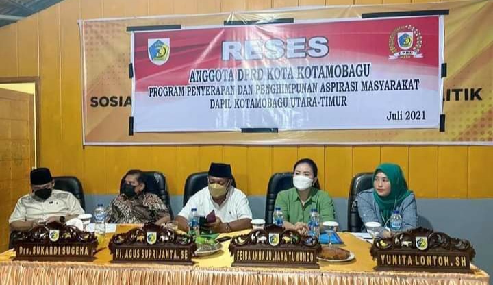 mediatotabuan.co, Kotamobagu – Sembilan dari 10 Anggota Legislatif (Aleg) DPRD Kotamobagu, Daerah Pemilihan (Dapil) 1 (satu) Kotamobagu Utara dan Timur, menggelar agenda Reses dalam rangka menyerap aspirasi masyarakat, Sabtu (3/07).