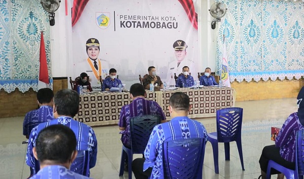 mediatotabuan.co, Kotamobagu – Wali Kota dan Wakil Wali Kota Kotamobagu, Ir Hj Tatong Bara – Nayodo Koerniawan SH (TB-NK), melakukan evaluasi semua kinerja Organisasi Perangkat Daerah (OPD) semester I tahun 2021, Kamis (8/07).
