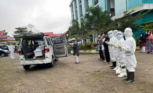 “Jadi proses sesampainya di lokasi penguburan, keluarga juga membantu karena keluarga juga diberikan Alat Pelindung Diri (APD) dari Dinas Kesehatan,” tuturnya.
