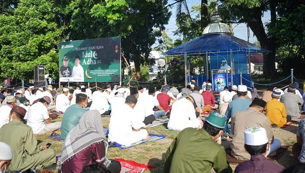 Pelaksanaan shalat Idul Adha di Kota Kotamobagu, menerapkan Protokol Kesehatan (Prokes) Covid-19 dengan ketat.
