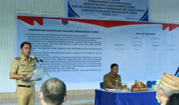 Hal ini dikatakan Bupati Sachrul seusai kegiatan pencanangan Pembangunan Zona Integritas Menuju Wilayah Bebas Korupsi (WBK) dan Wilayah Birokrasi Bersih dan Melayani (WBBM) Kabupaten Boltim 2021, bertempat di kediaman bupati, di Desa Modayag, Kecamatan Modayag, Senin (26/7).