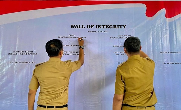 penandatanganan pakta integritas oleh Bupati Boltim, Sam Sachrul Mamonto dan Wakil Bupati Oskar Manoppo (SSM-OPPO) serta Sekretaris Daerah, Sonny Warrokka ini, juga dilakukan seluruh kepala Satuan Kerja Perangkat Daerah (SKPD) beserta para Camat dilingkungan Pemkab Boltim, melibatkan tokoh masyarakat, pengusaha dan wartawan, di rumah jabatan Bupati Boltim,