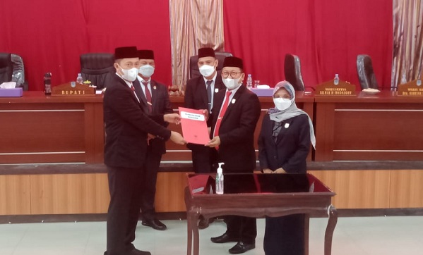 mediatotabuan.co, Bolsel – Dewan Perwakilan Rakyat Daerah (DPRD) Bolaang Mongondow Selatan (Bolsel), setujui Rancangan Peraturan Daerah (Ranperda) tentang Rencana Pembangunan Jangka Menengah Daerah (RPJMD) Kabupaten Bolsel Tahun 2021-2026, menjadi Peraturan Daerah (Perda), Senin (9/08).