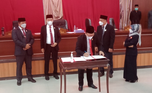 mediatotabuan.co, Bolsel – Dewan Perwakilan Rakyat Daerah (DPRD) Bolaang Mongondow Selatan (Bolsel), setujui Rancangan Peraturan Daerah (Ranperda) tentang Rencana Pembangunan Jangka Menengah Daerah (RPJMD) Kabupaten Bolsel Tahun 2021-2026, menjadi Peraturan Daerah (Perda), Senin (9/08).