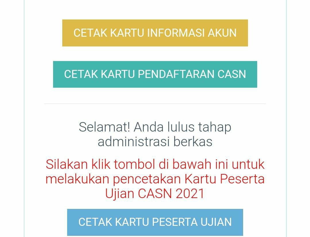Lanjutnya, pencetakan kartu ujian ini, bisa dilaksankan hingga sebelum pelaksanaan ujian melalui akun sscasn masing-masing.