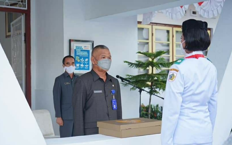 Dalam agenda penerimaan bendera merah putih ya g diserahkan Paskibraka Kotamobagu di kantor Wali Kota Kotamobagu ini, Asisten I Hi Teddy Makalalag, didampingi Kepala Bapelitbangda, Hi Adnan Masinae.