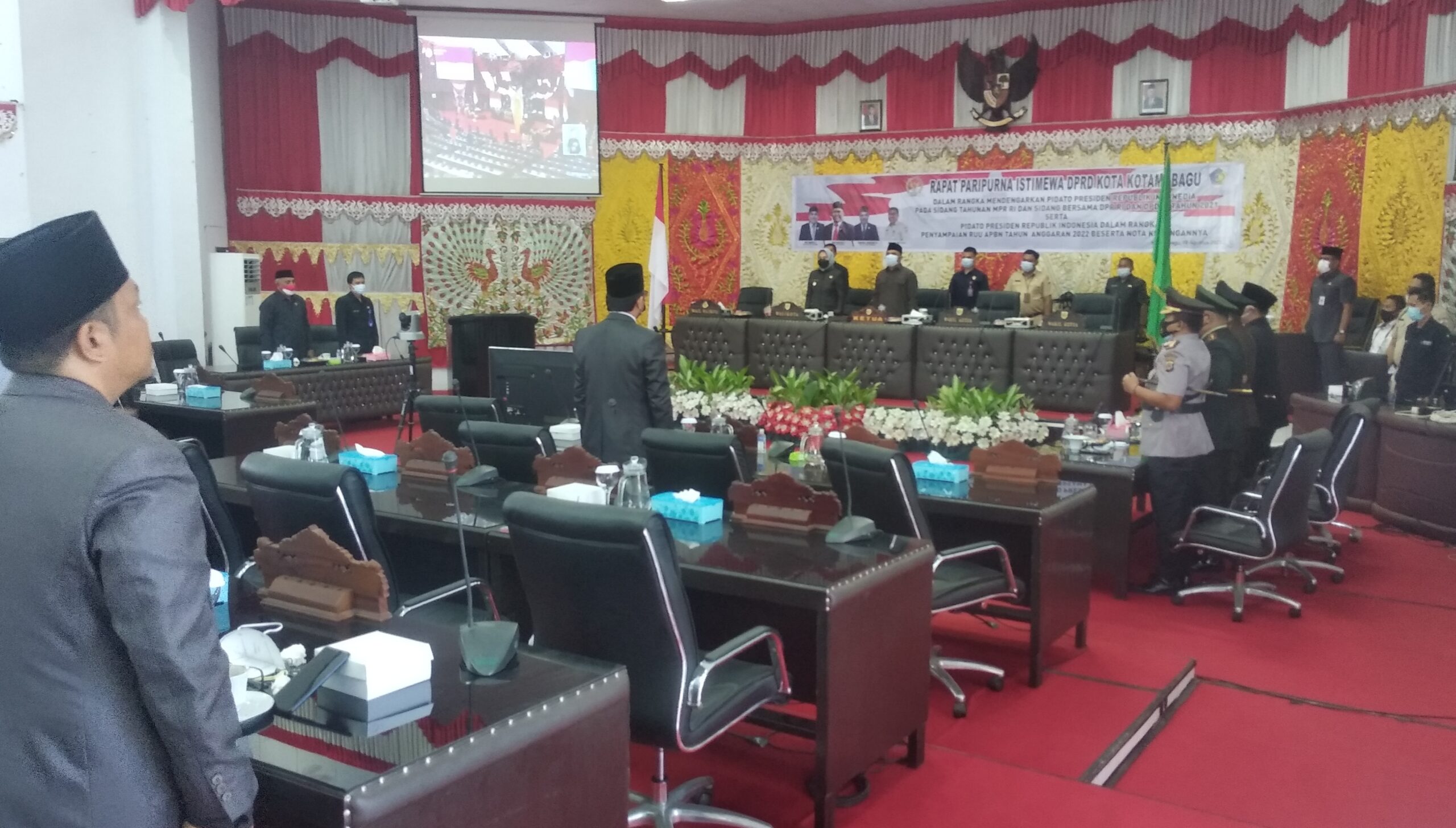 Agenda ini, dipimpin Ketua DPRD Kotamobagu, Meiddy Makalalag, didampingi Wakil Ketua Syarifuddin Mokodongan, diikuti Wali Kota Ir Hj Tatong Bara, Kapolres Kotamobagu, Dandim 1303 Bolmong, Kepala Kejaksaan Negeri, Kepala Pengadilan Kotamobagu, Kepala Kemenag Kotamobagu, Sekda Kotamobagu, kerena pandemi Covid-19, maka dihadiri anggota dewan perwakilan fraksi dan alat kelengkapan dewan, serta diikuti para pimpinan SKPD via zoom atau virtual.