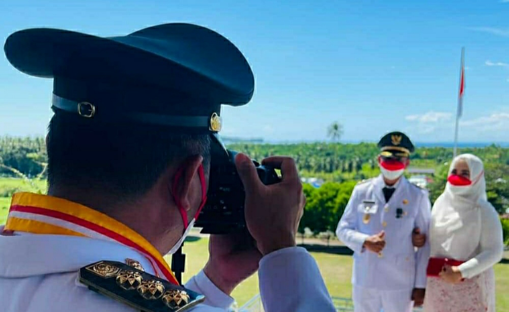 Yang menariknya, dalam sesi pengambilan gambar usai pelaksanaan upacara dalam rangka HUT Ke-76 Kemerdekaan RI ini, pemotretnya adalah Bupati Boltim, Sam Sachrul Mamonto, Selasa (17/08).