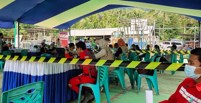 Kegiatan vaksinasi kepada karyawan dan pekerja dilaksanakan oleh Dinas Kesehatan (Dinkes) Bolmong, bersama tim vaksinator berjumlah 17 Orang, dipimpin Kepala Puskemas Lolak, Ani Wowor.