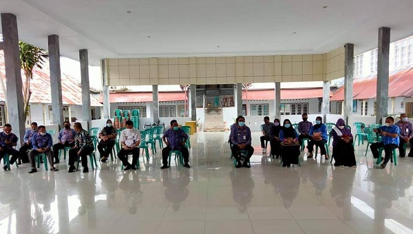 Agenda rapat evaluasi ini, menerapkan Protokol Kesehatan (Prokes) Covids-19 dengan ketat, dan dilaksanakan di aula kantor Wali Kota Kotamobagu.