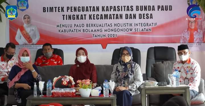 mediatotabuan.co, Bolsel – Bunda Pendidikan Anak Usia Dini (PAUD) Kabupaten Bolaang Mongondow Selatan (Bolsel) Ny. Selpian Kamaru-Manoppo, didampingi Kepala Dinas Pendidikan dan Kebudayaan (Disdikbud) Bolsel, Rante Hatani, membuka kegiatan Bimtek Penguatan Kapasitas Bunda PAUD Tingkat kecamatan dan desa.Kegiatan mengusung tema “Menuju PAUD Berkualitas Holistik Integratif Kabupaten Bolsel Tahun 2021” tersebut, dilaksanakan di ruang pertemuan Disdikbud Bolsel, di kawasan perkantoran Panango, Kamis (11/11).
