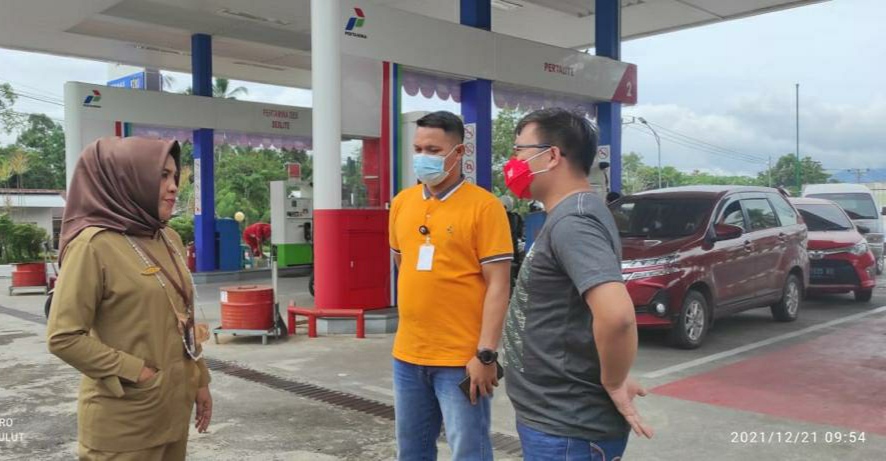 Saat meninjau pelayanan di SPBU Moyag Tampoan, Kepala Bagian (Kabag) Ekonomi dan Pembangunan Pemkot Kotamobagu, Suhartien Tegela, mengimbau kepada pemilik maupun karyawan SPBU, untuk tidak melayani pengisian galon, apalagi disaat terjadi antrian.